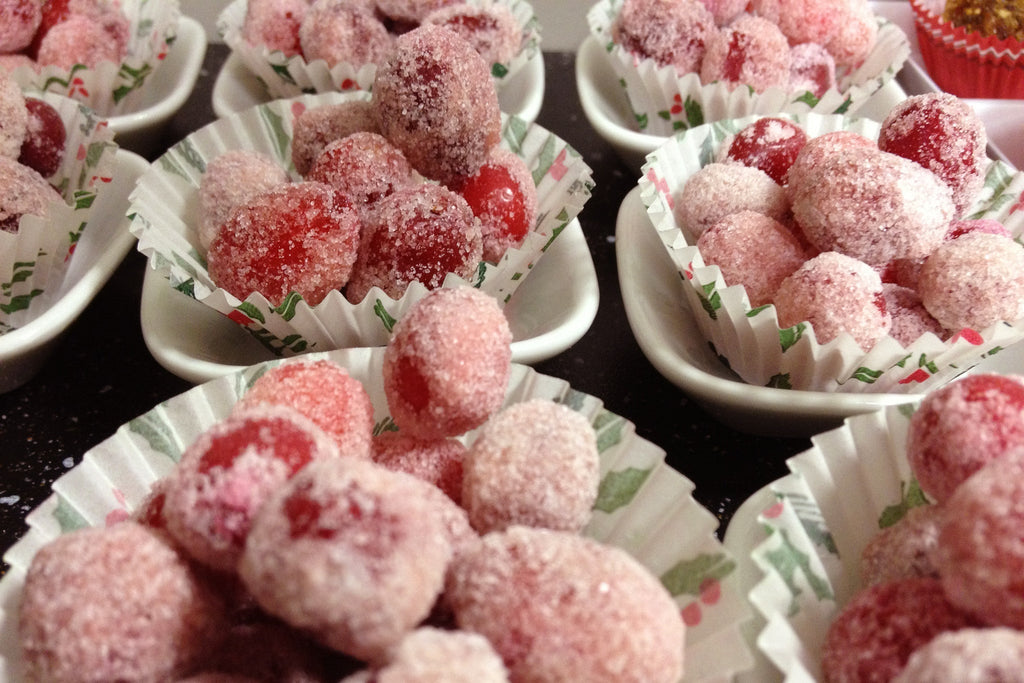 Drain the cranberries and toss them with the superfine sugar so they are well coated. Spread in a single layer on a baking sheet and let dry at