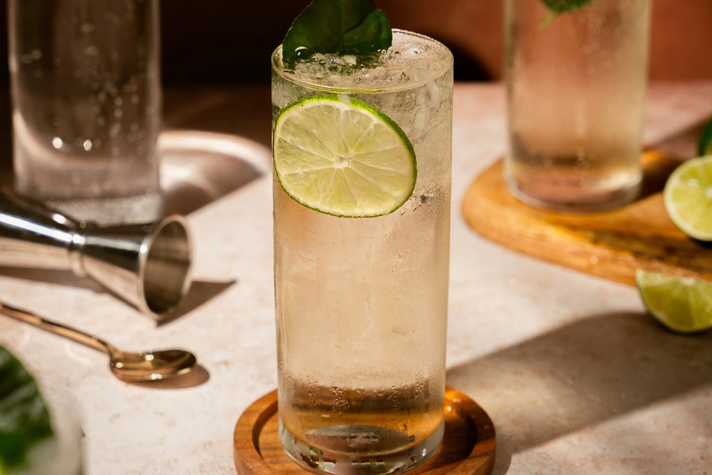 Fresh lime and Key Lime White Balsamic bring crisp citrus notes, while Honey Ginger White Balsamic adds warmth and gentle sweetness. Paired with non-alcoholic gin and topped with tonic, this sparkler is light, lively, and endlessly sip-able. It’s the kind of drink that proves mindful drinking can still feel celebratory, social, and genuinely satisfying.