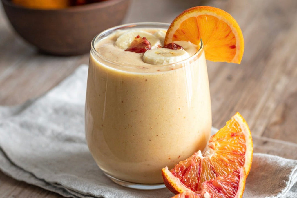 Honeybell Orange White Balsamic pairs beautifully here — its natural sweetness and citrus notes elevate the smoothie without extra sugar.